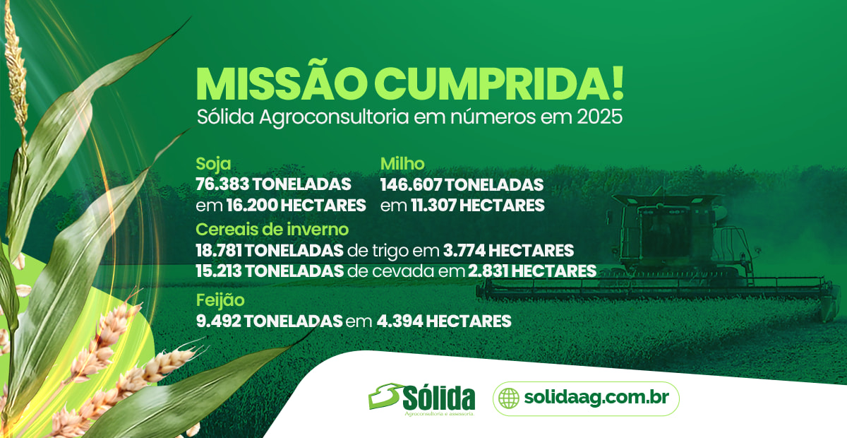 Saiba maisNo dia 5 de dezembro será celebrado o Dia Mundial do Solo, uma data que reforça a importância vital desse recurso para a segurança alimentar global e a sustentabilidade ambiental. Na Sólida Agroconsultoria, porém, essa reflexão vai além do calendário: cuidar do solo é um compromisso assumido todos os dias, pois para o agricultor ele não é apenas o local de plantio, mas o principal ativo do seu negócio. Preservá-lo é uma questão de responsabilidade ecológica e de inteligência econômica.